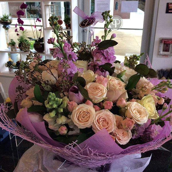In pink, white and lavender, with stocks, roses, seeded eucalyptus, snapdragons and tulips, this luxury style bouquet will leave them breathless! For Mother’s day, Valentine’s day, Women’s day, or any special occasion that requires something exceptional.