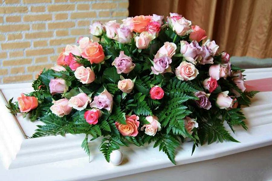For the lover of roses, this casket spray is designed with an pretty assortment of roses and leather fern.